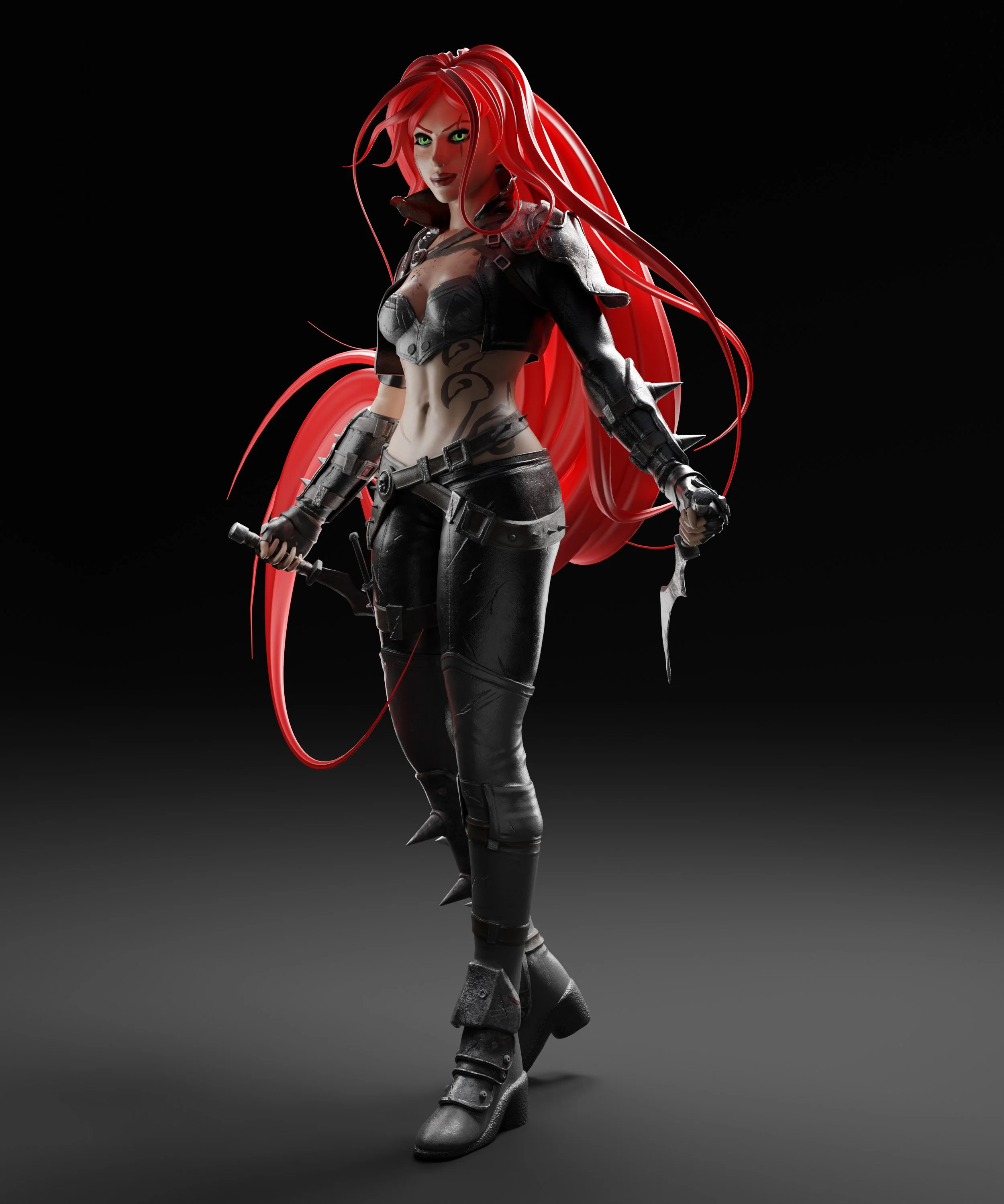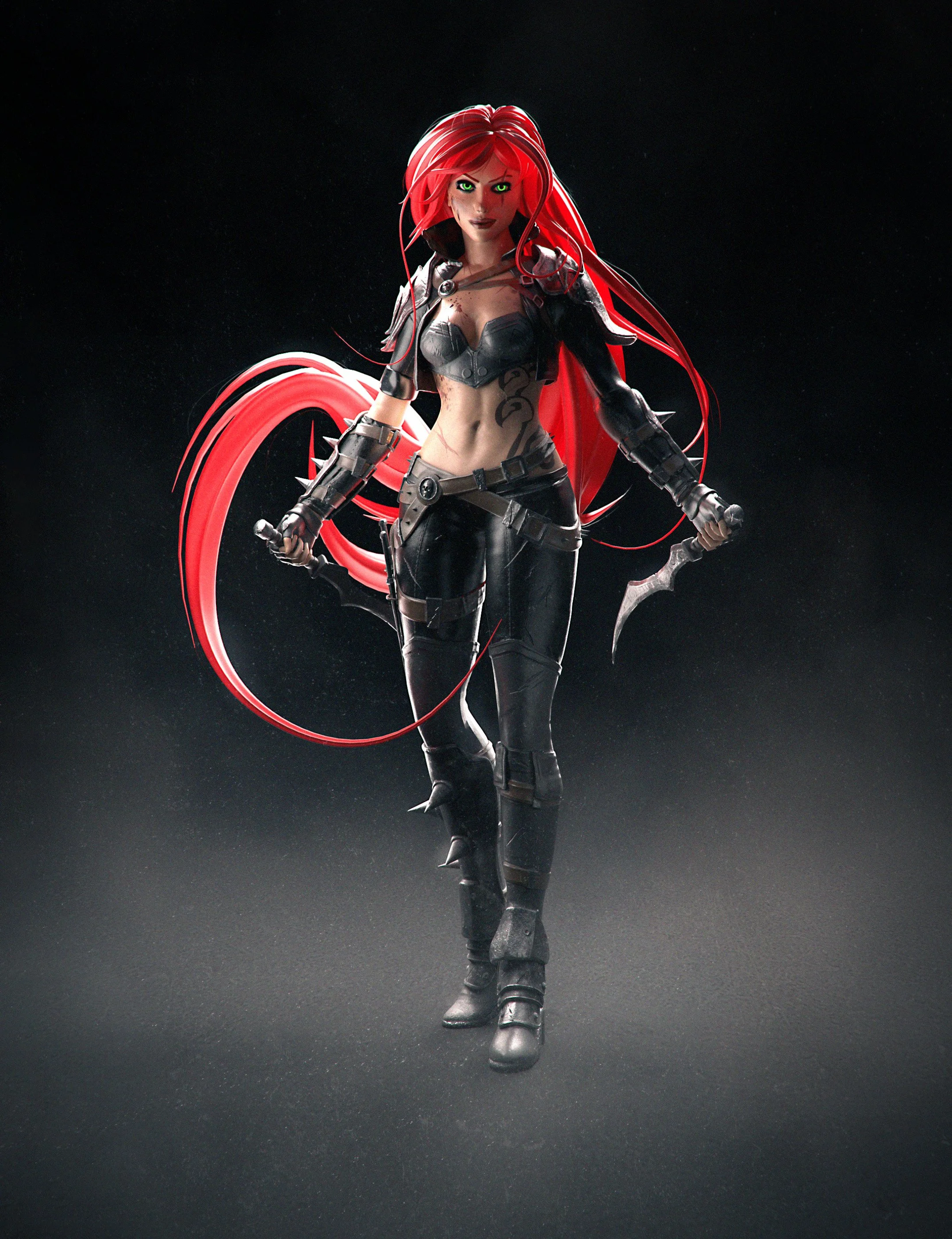 To this end I based this piece on concept art of Katarina from League of Legends and developed techniques for creating believable clothing in Zbrush, learnt how to create stylised hair, and improved my understanding of texturing in Substance Painter.